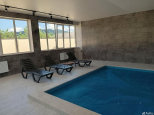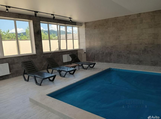 В зале с бассейном панорамные окна, вытяжка.