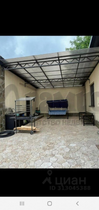 Между домом и кухней во дворе навес из лексана.