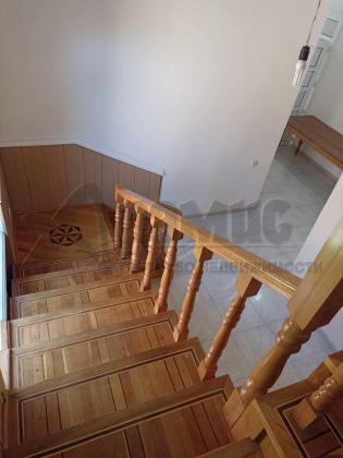 Во всем доме на полу уложен качественный паркет, на первом этаже паркет из дуба, а на втором этаже из бука. Вкухне на полу-плитка.