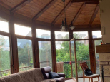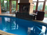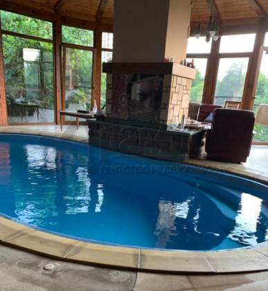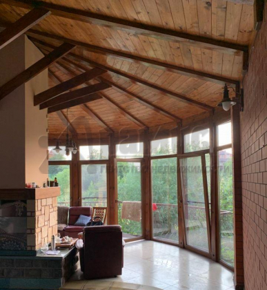 К дому примыкает банный комплекс с бассейном, сауной и камином. Отсюда из полукруглых панорамных окон открывается тот же потрясающий вид на Терек.