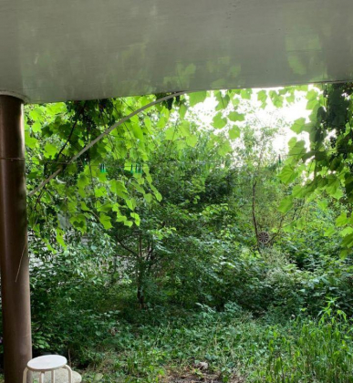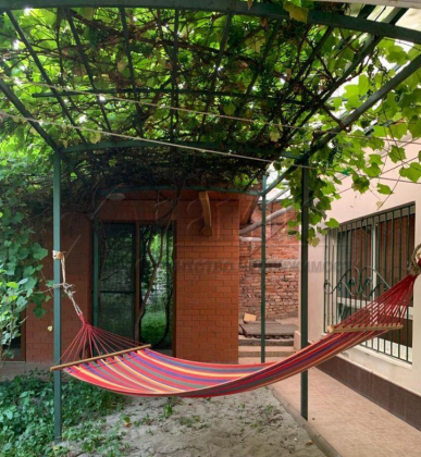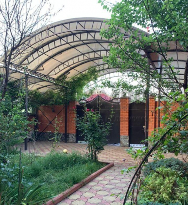 Два дворика: передний с местом для автомобиля под навесом и задний двор с террасой 70 кв.м в окружении богатой растительности и возможностью по-лермонтовски насладиться как "ласкаясь, Терек на ухо журчит".