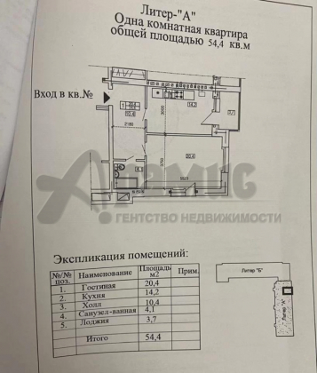 В избранное 1-к. кв, 53,3 м², 3/5 эт.