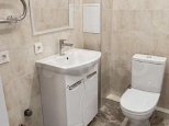 Совмещенный санузел оформлен в светлых тонах, установлена современная сантехника.