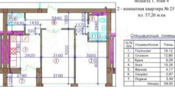 В избранное 2-к. квартира, 56 м², 3/9 эт.